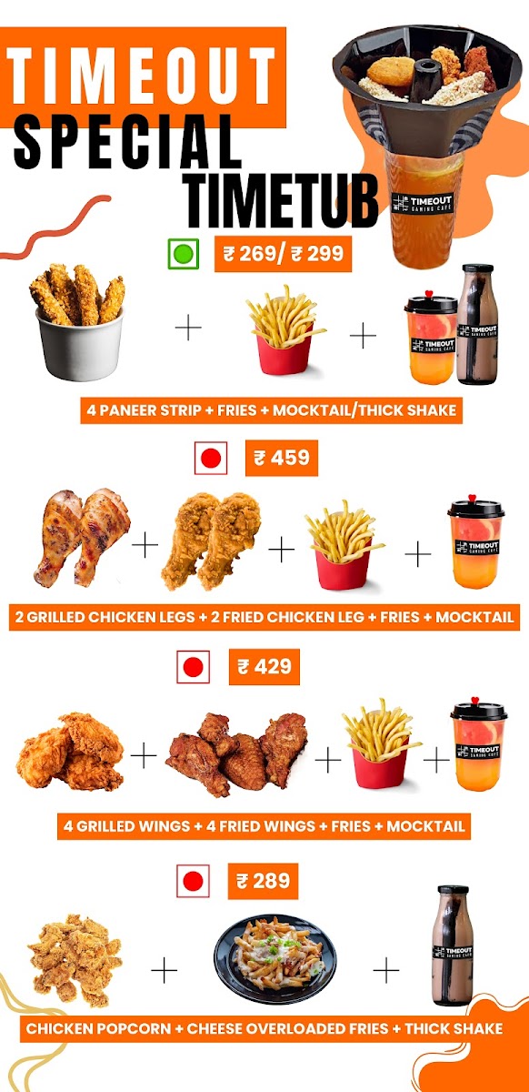 The menu is a delightful fusion of flavors that caters to all tastes, making sure every visit feels like a new culinary adventure. Grab a refreshing Cold Coffee or indulge in a rich Hot Chocolate as you settle in to game. For something more substantial, try the wonderfully cheesy Corn & Cheese Pizza or the appetizing Margherita, both of which can elevate any gaming session to the next level. And if you're feeling a bit more adventurous, don't miss the Timeout Special Pizza, a delightful combination that promises to satisfy your cravings.